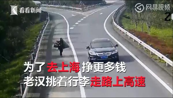 (原标题:为到上海打工 76岁老汉挑着行李徒步上高速)