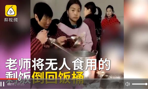 实拍邯郸一小学老师将学生剩饭倒回饭桶现场视频