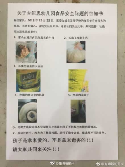 中新网福州12月27日电“发臭的牛肉、长虫的小米、发霉的面条…”近日,一个爆料福建省福州市闽侯县某幼儿园有食品卫生问题的短视频在网络上流传。