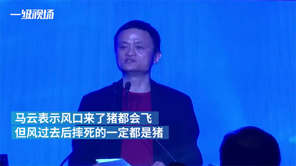 1月3日,世界浙商上海论坛,马云表示风口来了猪都会飞,但风过去后摔死的一定都是猪。马云还称,一个公司讲了几个故事就融了几十亿元,灾难就已经靠近了。