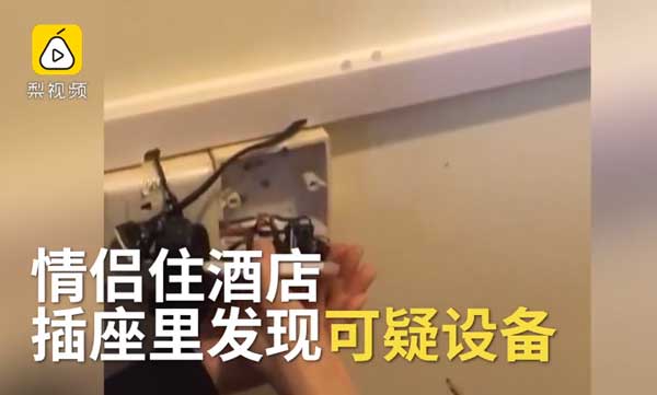 实拍广州一对情侣住7天连锁酒店插座疑藏摄像头现场视频