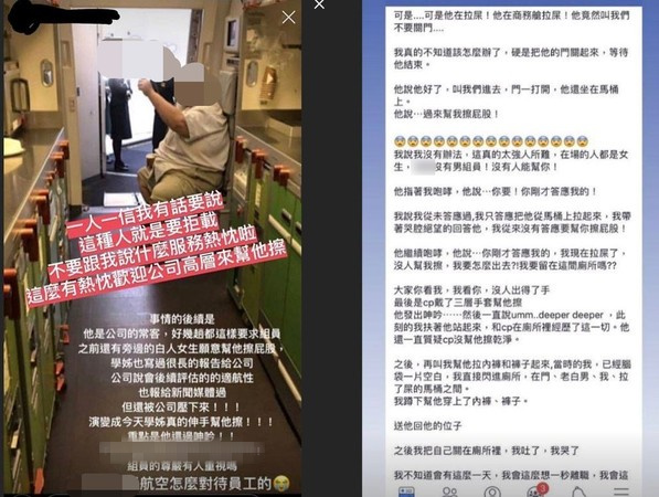原标题:被逼为200公斤男子擦屁股 台空姐崩溃