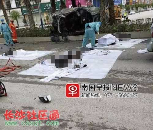 因车辆起火迅速且火势较大,当地消防、120及交警等部门接报后迅速派出人员到场救援,后发现现场共5人遇难。