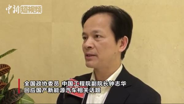 实拍中国工程院副院长钟志华回应国产新能源汽车卖不出去视频