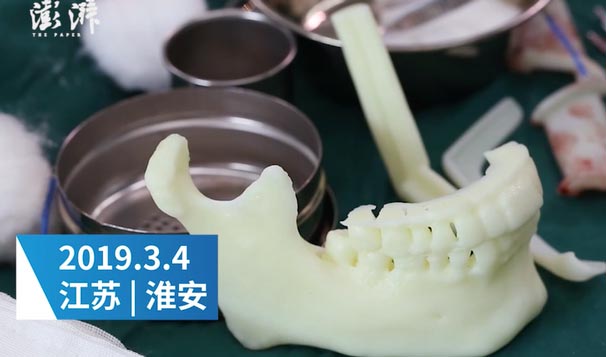 实拍淮安一男子患口腔癌医院3D打印换新下巴现场视频