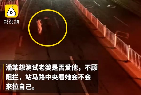 3月11日,浙江金华。潘某与老婆站马路边吵架,想测试老婆是否还爱自己,他竟不顾阻拦,站在马路中央40分钟以身试爱,看看老婆会不会来拉自己,就当妻子报警时,他被一辆躲避不及的面包车撞上,全身多处骨折…