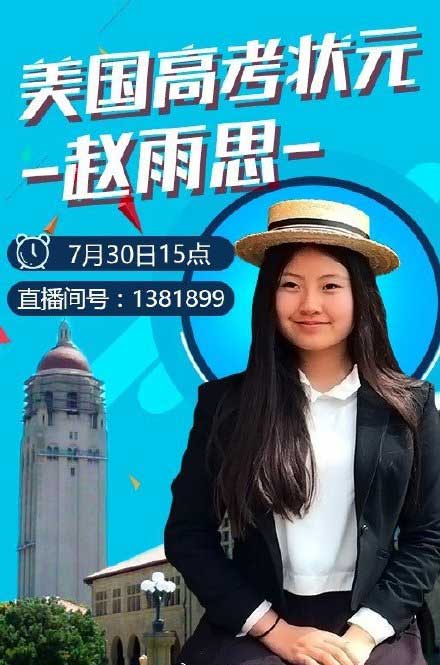 被斯坦福录取后,赵思雨非但没有小心翼翼避免被发现,反而高调包装自己为“美国高考状元”。甚至还于2017年夏天在斗鱼上直播自己的“心路历程”,称自己真的“很普通”。