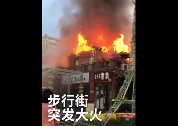 实拍安徽阜阳一步行街突发大火滚滚浓烟冲天现场视频