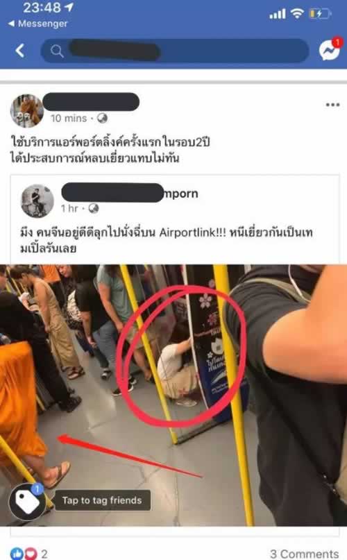 6月11日,一位泰国的网友@muse_theptas在Twitter上发文表示:一位中国女游客在曼谷的机场快线上突然原地蹲下,竟然在原地开始撒尿!