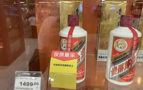 记者走访了深圳彩田路华润万家,橱窗中2019年的飞天茅台标价为1499元/瓶,不过旁边特意用黄色醒目标签提示“仅供展示,详情请咨询酒柜员工”。关于抢茅台,酒柜员工还是有心得的,她告诉记者:“可以抢到的,每天上午10点和下午3点两个点放货,提前两分钟开始准备比较好抢到,我这周就刚抢到了一瓶。”