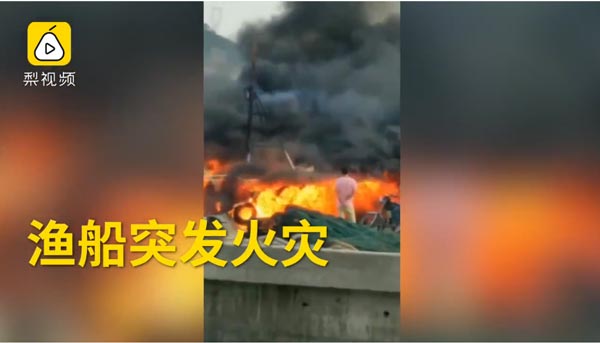 2019年10月15日,福建漳州,一艘渔船突发火灾,消防赶往救援。现场视频画面中,码头上浓烟滚滚,桥上人员向岸上撤离,渔船被烧成铁架。据媒体报道,发生火灾的渔船是一艘玻璃钢渔船,目前大火被扑灭,未有人员伤亡。