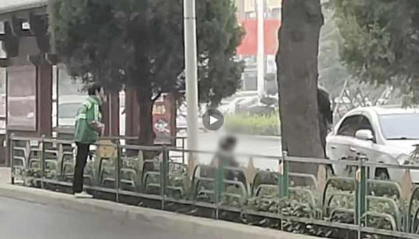 实拍河南一家长抱娃路边大便环卫阻止被骂哭视频