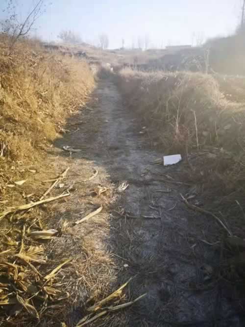 据当地村民介绍,玲玲家到崔古庄村小学如果走大路需要绕整个村子才能到达,但如果走小路的话只有几百米的距离,这个过程需要穿过一片玉米地和树林。如今耕地上已没了农作物,只有没有叶子的几行树和零星干枯的玉米秸秆还矗立于此。因此,孩子们上学的这条小路显得格外荒凉。