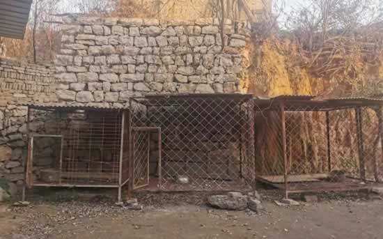 涉事犬只主人家院外的铁笼。新京报记者 寇家祥 摄