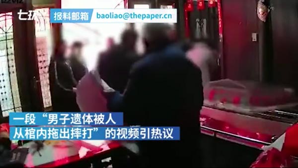 实拍老人遗体被亲生儿女暴力拉出棺材狂扇遗体耳光视频