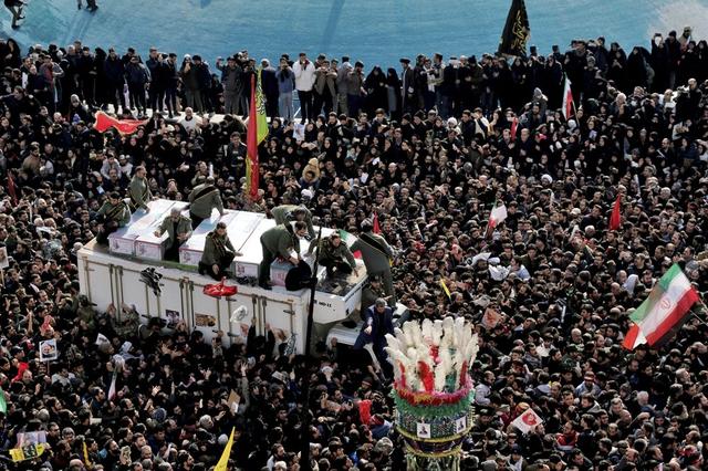 伊朗方面在首都德黑兰为苏莱曼尼举行追悼仪式,当地媒体报道有“数百万人”参加,伊朗最高领袖哈梅内伊在苏莱曼尼的棺木旁为其祷告,曾一度落泪。