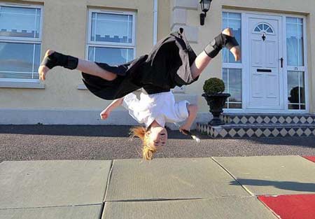 据悉,该女孩名叫杰西·简·迈克帕兰德,来自北爱尔兰阿玛郡。从三岁开始学习武术的她精通柔道、中国功夫、搏击等多种武术,去年开始学习剑术,小小年纪已经囊括包括世界武术协会少年组搏击冠军在内的117项武术界奖项,未来目标是冲击奥林匹克相关项目奖项。