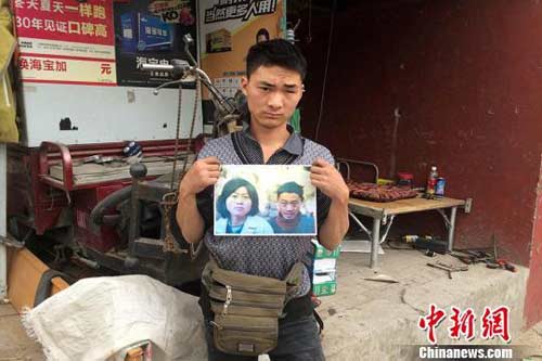 图为河南小伙黄自强手持母亲照片,苦苦寻母。 马义恒 摄