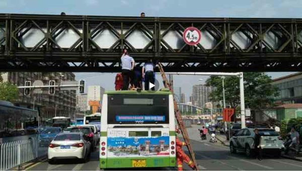 5月13日,湖南长沙一男子从天桥跳下,刚好摔在路过的公交车车顶上,消防员将其救下。公交司机易师傅称,当时看到桥上有人就提高了警惕,快到桥下时,看到他屁股动了下,就慢慢走,停到声响,就立马停车了。