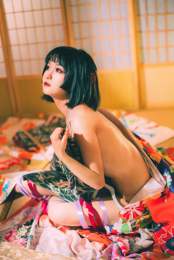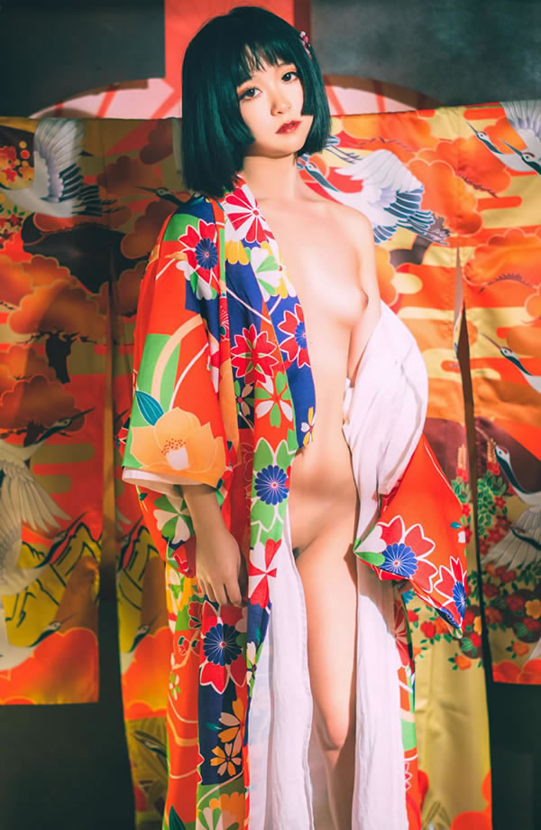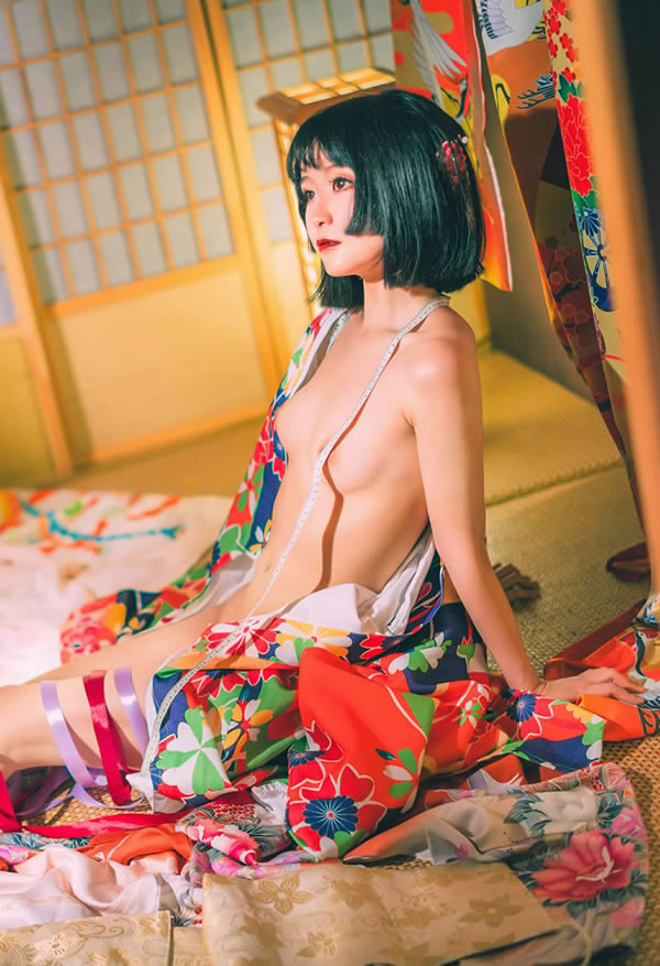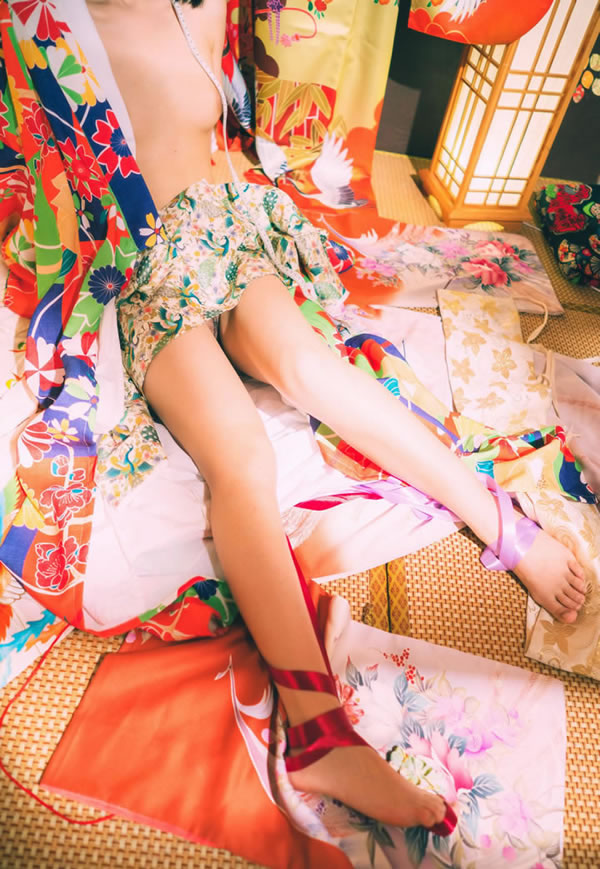 人气肥臀网红@olive_emmm - 红色和服+吊