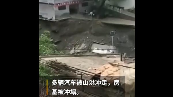 实拍甘肃宕昌突降暴雨引发山洪小车被卷走民房地基遭冲塌视频