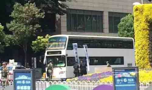 现场照片显示,一名男子将女孩劫持在双层公交车的2层,并挂出白色条幅“为河南村民讨说法”。据目击者称,警方使用了爆震弹,警方将人质救下车,人质和嫌犯均无伤亡。
