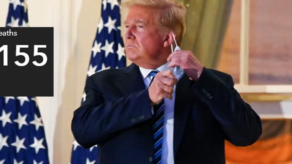 原标题:特朗普出院后发视频称“别怕新冠” 美媒:美国都死21万人了