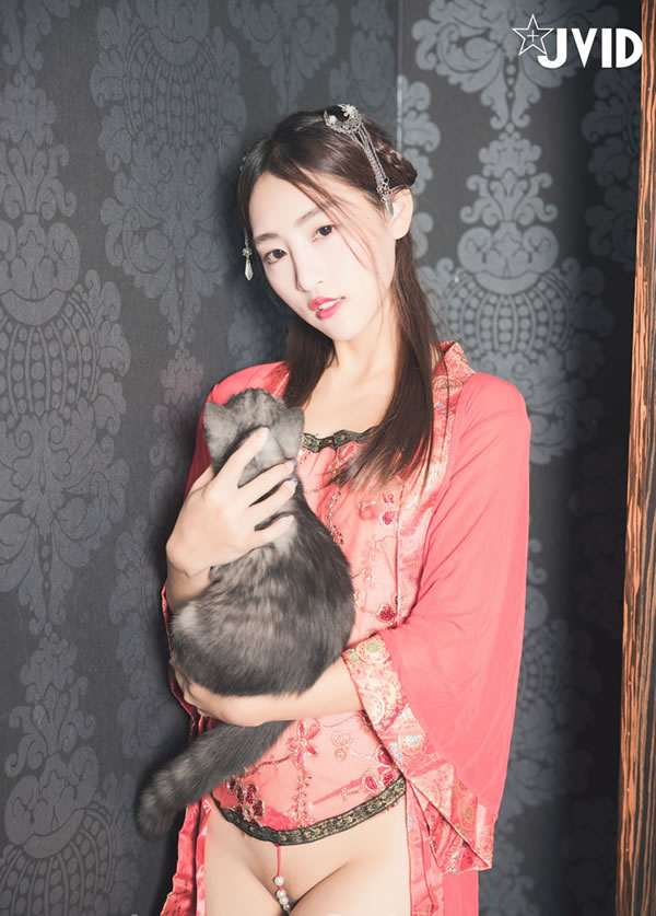 月光下的白嫩小美女与青花瓷无圣光人体艺