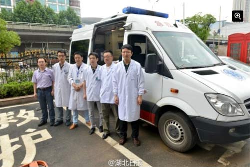 6月1日晚9点28分左右,重庆东方轮船公司所属“东方之星”旅游客船由南京开往重庆,上行至长江水域湖北监利县大马洲水道44号过河标水域处,突遇龙卷风翻沉。据该轮船公司介绍,船上有乘客406人,船员47人,导游5人,共458人。目前,载有6人的武汉协和医院救护车已紧急赶往监利。广州军区武汉总医院已派出一支由麻醉、骨科、消化、呼吸等专业30人医疗队,在院长周赤龙的率领下携带急救设备和药品正紧急赶赴事故现场。图为医疗队伍。