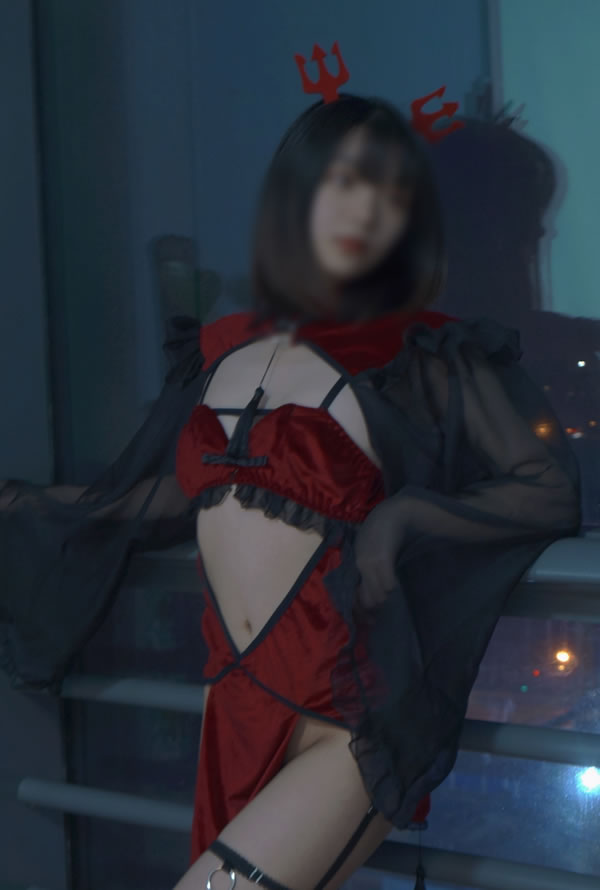 黑色吊带开叉美女Rahee销魂姿势福利图