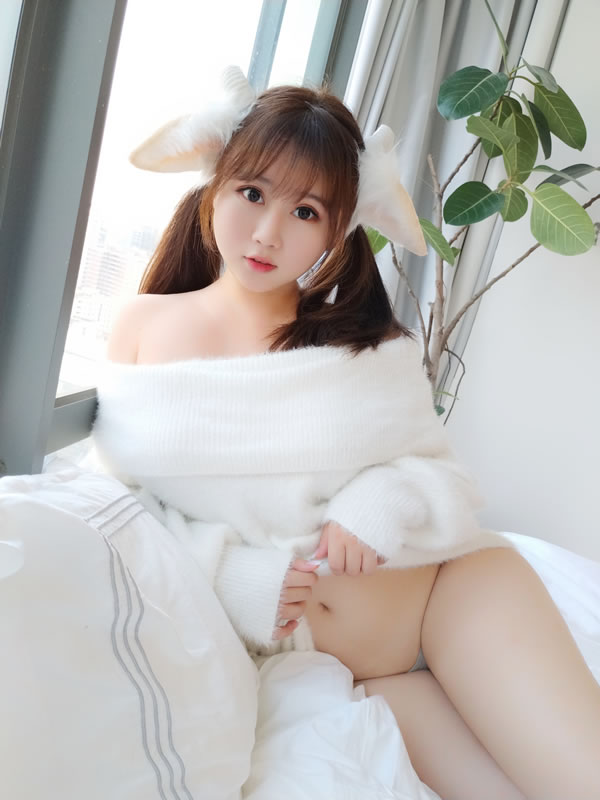 蜜桃少女是依酱呀- 底领毛线衣羊咩咩