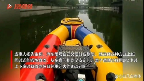 “这回是北京划船上班第一人了”……今天,网友“奇異学士”发在社交平台的一篇图文火了,因为限号选择划皮划艇上班,引起了众多网友关注。也有很多人讨论,护城河可以划船吗?安全能保证吗?东直门到安定门地铁只有两站为什么非要划船呢?