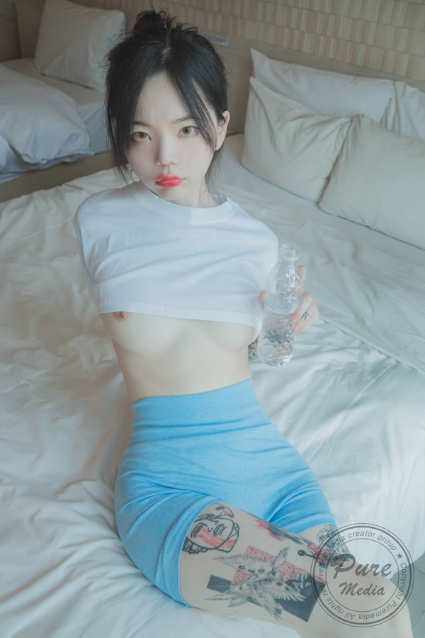 纹身白衣蓝色运动裤少女居家无圣光图集