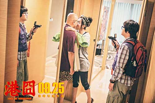 而物料发布另一看点则是首度曝光了《港囧》电影剧照。街头剧照大片感十足。在香港街头,徐峥包贝尔在电影中形象全面曝光,光头徐峥依然“正义凛然”,呆萌包贝尔则“土气十足”,尽显“文艺二逼”气质。其中包贝尔手中始终握着摄像机,死缠烂打的对徐峥进行跟拍,从早晨起床、身着豹纹内裤开始,甚至连徐峥赵薇二人亲热的细节都丝毫不放过。 而徐峥则面对包贝尔的镜头不厌其烦,试图摆脱其的纠缠,包贝尔则紧追不舍。二人在香港街头追逐,紧张的面部表情背后让人不禁猜测电影囧途冒险之旅是否更加艰难。而其中一张剧照中徐峥从出租中探头张望来看,徐峥似乎暂时摆脱了包贝尔这个“尾巴”。不过,本次曝光的电影剧情仅仅是整个港囧冒险的冰山一角,真正的电影剧情必定更加紧张欢乐。一个是真正的导演,一个是片中的导演,两人首度搭档携手踏囧途的故事也令人更加期待!