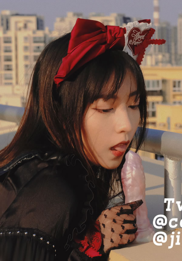 福利姬酒月天台黑色洛丽塔露出尺度图集