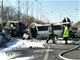 法制晚报·看法新闻 2018年1月31日上午,在北京市通州区京榆旧路上,一辆满载白酒的金杯越过护栏后与对面行驶的货车相撞,事故造成1死4伤,目前交警正在进行调查处理。